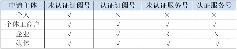 订阅号适用人群:个人、媒体、企业、政府或其他组织。