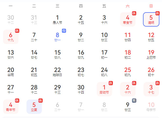 根据国务院清明节放假通知的旨意,我公司特将清明节放假调休时间在此公布,以便大家安排好外出游玩时间以及游玩安排,预祝大家过一个轻松愉快的清明。